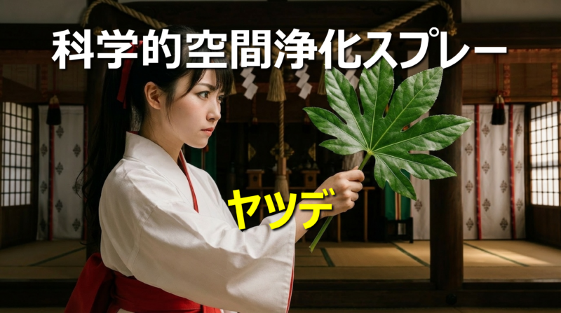 科学的空間浄化スプレー「ヤツデ」は、古来より抗菌・防虫作用で知られるヒバの抽出成分を主体に、伊勢神宮のお神酒と大避神社のお清め塩を調合した特別なスプレーです。