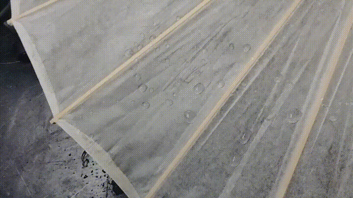 水滴が触れた瞬間に転がり落ちるほどの撥水性を付与。