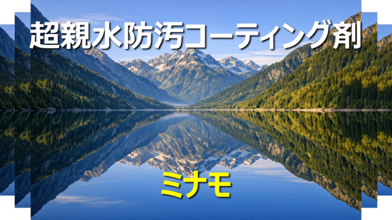ミナモ」は測定不可能なほど低い水接触角を実現し、従来品を超える超親水性能を持っています。さらに強化光触媒による有機物分解機能も備えている点が特徴です。
