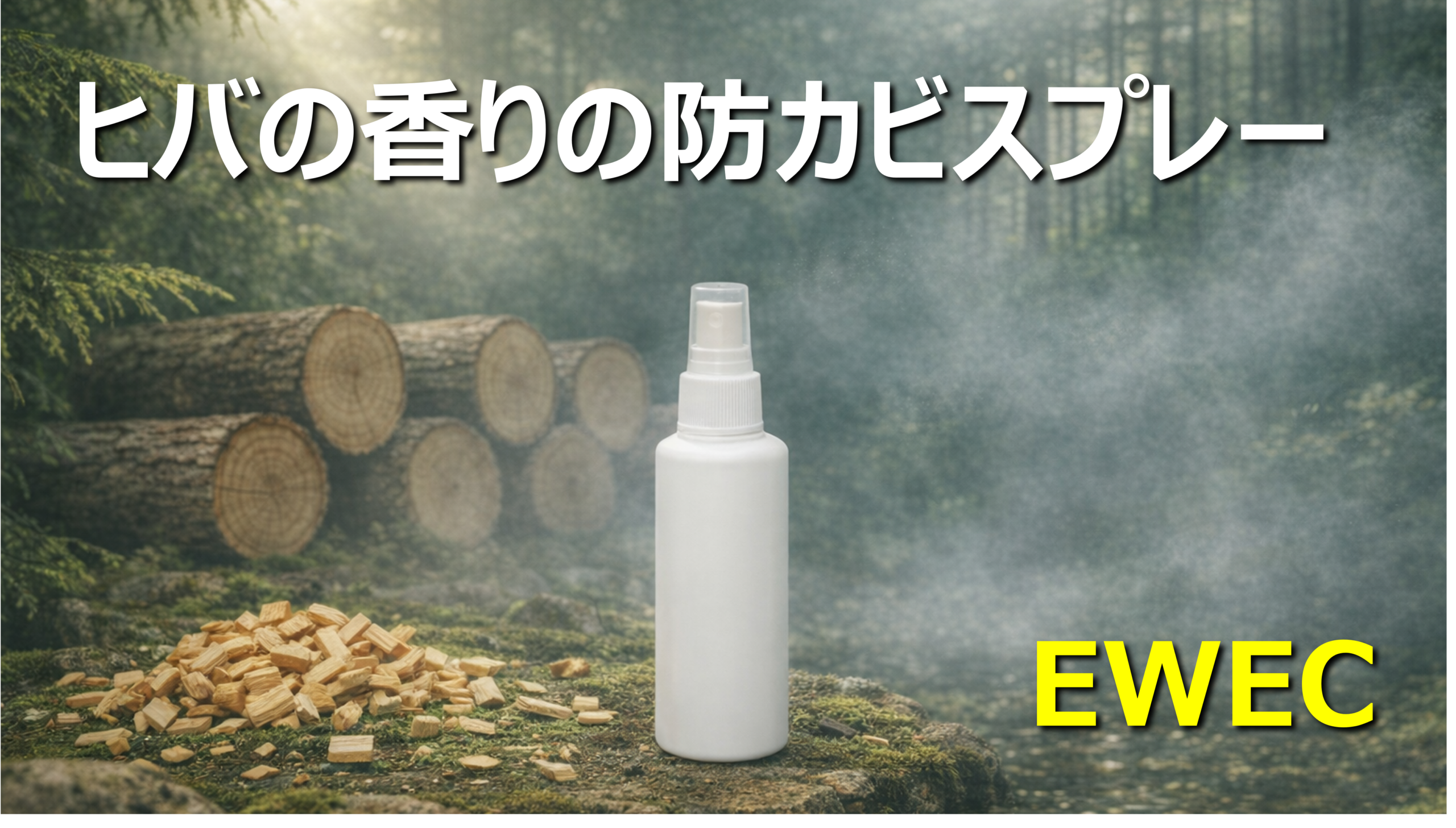 カビ菌胞子はいつでもどこでも存在しますが、「EWEC」に含まれるカビの成長阻害物質がカビ胞子の目に見える「カビ」になることを防止します。つまり「カビを落とすのではなく、“生やさない”という発想」で開発されています。